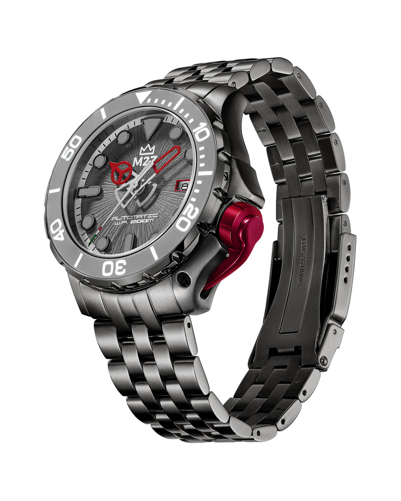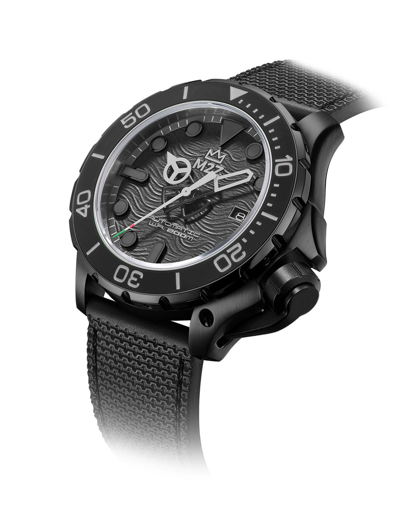 Italian design watch made in a single block of 316L steel which makes it resistant up to 200 meters.